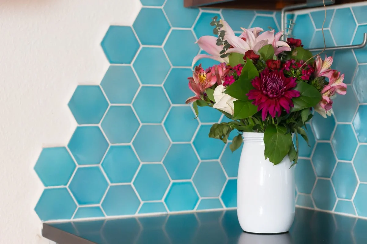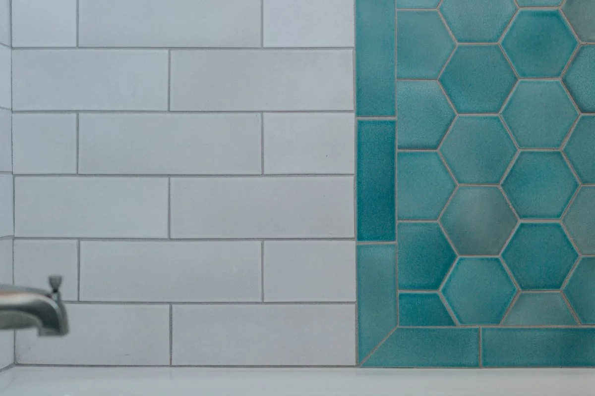 2” x 6” Rectangles in River Mist and 3.5” Hexagons in River Mist