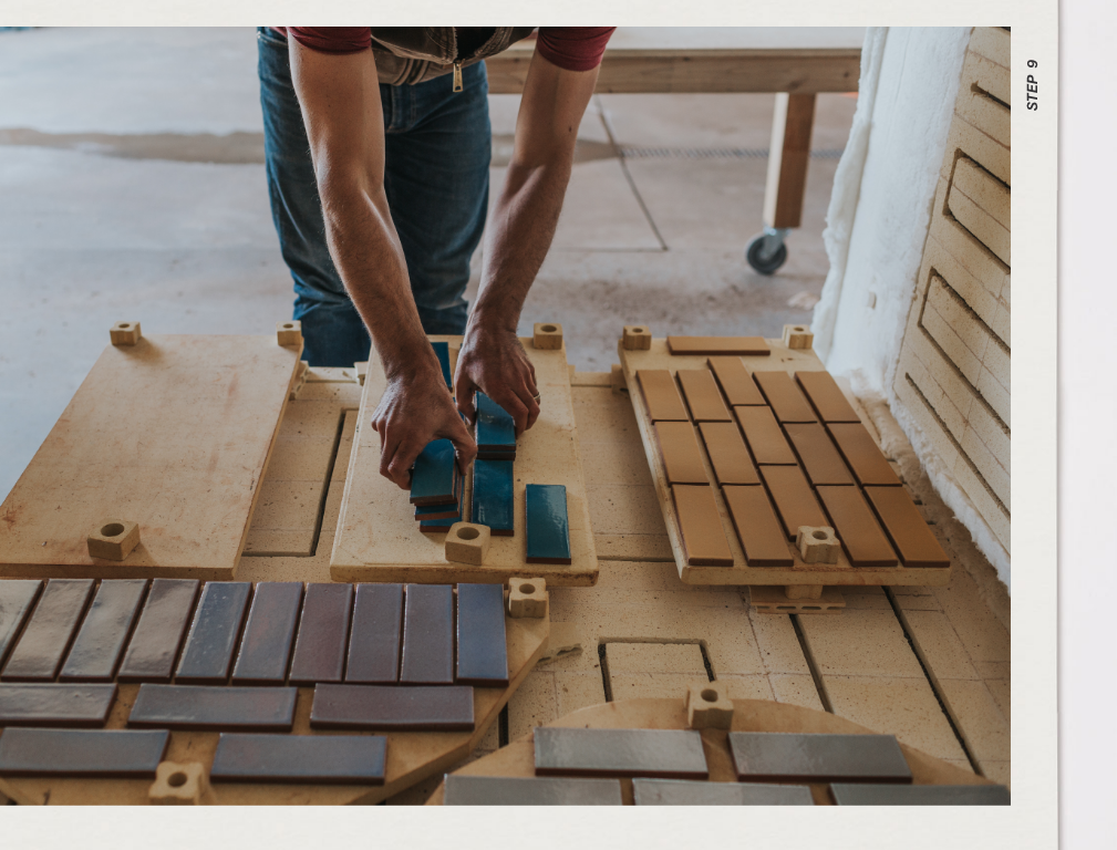 Tiles are then fired again to 1,900 degrees Fahrenheit, allowing the glaze to melt and become glass that is fused to the clay tile. Once the glaze kiln is unloaded, we check each tile individually for quality and consistency.